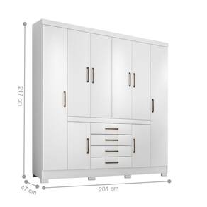 O guarda roupa traz um design imponente que valoriza o ambiente com medidas internas amplas e com espaços bem distribuídos para uma boa acomodação de roupas e objetos.