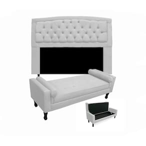 Conjunto Cabeceira Geovana + Calçadeira Fênix King 195cm Suede Branco - LM DECOR