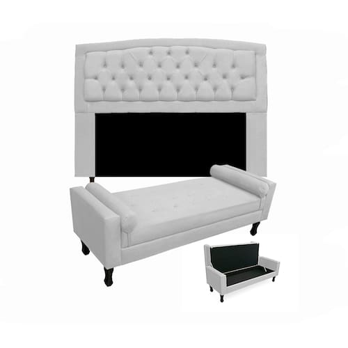Conjunto Cabeceira Geovana + Calçadeira Fênix Queen 160cm Suede Branco - LM DECOR