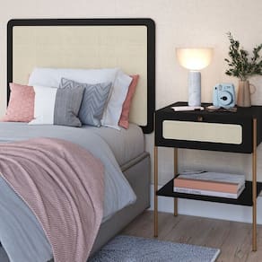 O Conjunto de Cabeceira e Mesa de Cabeceira Oslo é confeccionada em MDP com acabamento BP e aplique de tela sintética. Conjunto perfeito para complementar a decoração e organização do seu dormitório. Traz como característica um traço artesanal, suave e acolhedor. Com design escandinavo minimalista, remete em suas linhas retas a simplicidade, charme e funcionalidade que sua casa merece. Composta com uma paleta de cores neutras, Nero é um acabamento ebanizado atemporal, para quem deseja fugir do tradicional sem perder a nobreza, sofisticação e elegância da madeira, tornando-se assim a opção ideal para um ambiente com toque sofisticado e ao mesmo tempo aconchegante. Altura do Conjunto: 60 cm Ambiente: null Ambiente Principal: Quarto Cor: Nero/Dourado Informação Complementar: 1x Mesa de Cabeceira 1 Gaveta Palhinha Pé Metal Oslo Nero/Dourado Largura: 48 cm Altura: 60 cm Peso: 7,5 kg Profundidade: 37,5 cm Necessita Montagem: Sim