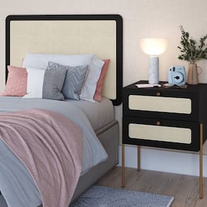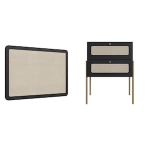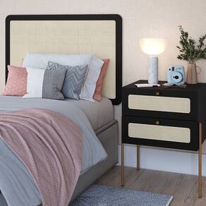 O Conjunto de Cabeceira e Mesa de Cabeceira Oslo é confeccionada em MDP com acabamento BP e aplique de tela sintética. Conjunto perfeito para complementar a decoração e organização do seu dormitório. Traz como característica um traço artesanal, suave e acolhedor. Com design escandinavo minimalista, remete em suas linhas retas a simplicidade, charme e funcionalidade que sua casa merece. Composta com uma paleta de cores neutras, Nero é um acabamento ebanizado atemporal, para quem deseja fugir do tradicional sem perder a nobreza, sofisticação e elegância da madeira, tornando-se assim a opção ideal para um ambiente com toque sofisticado e ao mesmo tempo aconchegante. Altura do Conjunto: 60 cm Ambiente: null Ambiente Principal: Quarto Cor: Nero/Dourado Cor do Produto: Nero/Dourado Informação Complementar: 1x Mesa de Cabeceira 2 Gavetas Palhinha Pé Metal Dourado Oslo Nero/Dourado Largura: 48 cm Altura: 60 cm Peso: 9,35 kg Profundidade: 37,5 cm Necessita Montagem: Sim