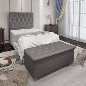 Conjunto Cabeceira Solteiro e Recamier Baú 0,90m Madrid Suede Cinza Dal Poz Estofados