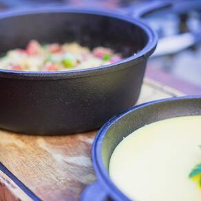 O Conjunto Caçarola Frigideira Multiuso da Panela Mineira é um produto moderno e extremamente versátil, que apresenta alto desempenho no preparo de diversas receitas, como pães, peixes, carnes, ensopados e muito mais. Com um design aperfeiçoado, fundo reto preto e bordas alongadas, este produto 3 em 1 (Assadeira, Caçarola e Frigideira), oferece uma excelente distribuição e retenção de calor característico do ferro fundido.