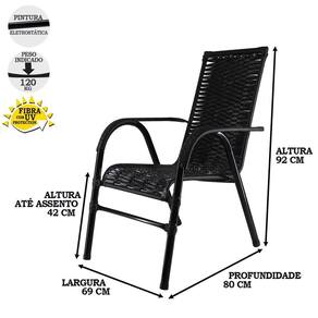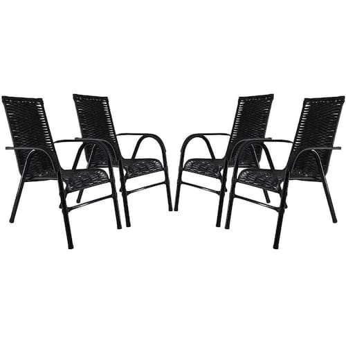 Conjunto Com 4 Cadeiras Bela, Artesanal, Para área, Varanda, Edícula, Fibra Sintética Preta