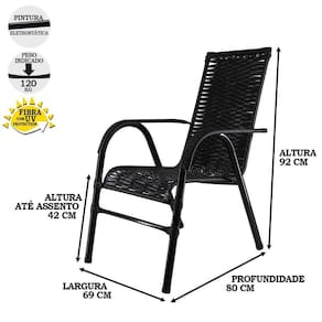 Conjunto Com 4 Cadeiras Bela - Preta, Artesanal, Para área, Varanda, Edícula, Fibra Sintética