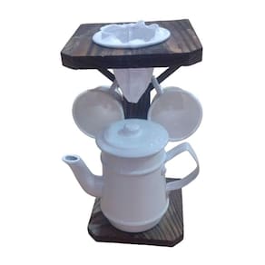 Conjunto café com bule de alumínio e suporte rústico branca Conjunto para café artesanal - suporte em madeira com coador de pano, bule em alumínio e 2 canecas em acrílico Transforme seu cantinho do café em um espaço cheio de charme e aconchego, trazendo para sua casa o charme de uma cafeteria. Este conjunto artesanal reúne um suporte em madeira rústica, cafeteira em alumínio com design retrô, coador de pano removível e duas canecas em acrílico, unindo funcionalidade e estilo para momentos únicos. Perfeito para decorar sua cozinha, varanda ou sacada, é o convite ideal para celebrar pausas gostosas - seja o coffee break relaxante, o café da manhã em família ou aquela tarde com amigos. Cada peça foi pensada para trazer conforto e uma experiência acolhedora. Presenteie-se ou surpreenda quem você gosta com um item que combina tradição, qualidade e afeto. Porque café não é só bebida, é momento para compartilhar, celebrar e apreciar com estilo e carinho. Dimensões aproximadas: - suporte coador de café em madeira: altura: 22 cm x largura: 12 cm x comprimento: 12 cm - bule de café em alumínio de 450 ml: altura: 11 cm x largura: 7 cm x comprimento: 7 cm Características do produto: - suporte artesanal em madeira com acabamento rústico decorativo, coador de pano removível para café, bule em alumínio e duas canecas em acrílico. Um conjunto funcional, feito com cuidado e bom gosto para valorizar e organizar seu cantinho do café. Cuidados e sugestões: - limpe o suporte de madeira com pano seco ou levemente umedecido. Lave o coador de pano apenas com água e deixe secar bem. Use o lado amarelo da esponja para limpar o bule de alumínio e as canecas acrílicas, evitando riscos. Guarde em local arejado e seco. do produto: - o produto é cuidadosamente embalado para evitar danos durante o transporte. Caso ocorra algum problema, oferecemos um sistema de e troca para sua tranquilidade. Imagens meramente ilustrativas - produto artesanal, podendo variar de cor e/ou tonalidade Marca: Não Informado