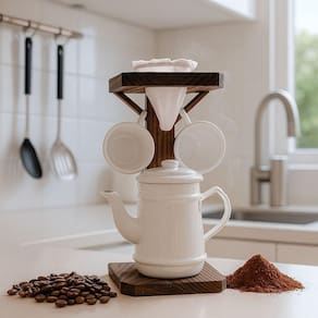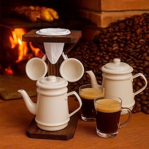 Conjunto Café Com Bule De Alumínio E Suporte Rústico Branca