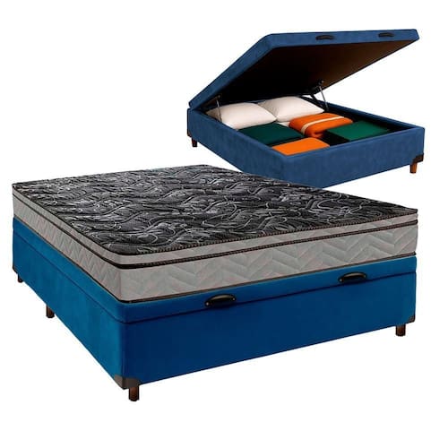 Conjunto Cama Box Bau Azul Casal + Colchão D28 Conforto Paropas Conjunto Casal Colchão Conforto + Cama Box Bau Colchão Casal com 17cm de altura, ideal para uso diário e confortável