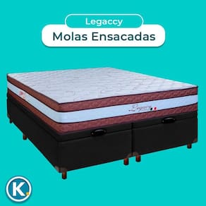 Conjunto Cama Box Bau Blindado Casal + Colchão Molas Ensacadas Legaccy Paropas Conjunto Casal Colchão Legaccy + Cama Box Bau Colchão Casal com 28cm de altura, oferecendo conforto elevado e visual moderno