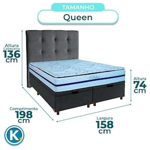 Conjunto Queen Colchão Blue + Cama Box Bau