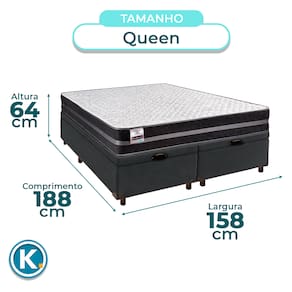 Conjunto Queen Colchão Bogota + Cama Box BauColchão Queen com 22cm de altura, ideal para conforto e praticidadeRevestimento em Jacquard e Poliéster: beleza, resistência e toque suaveSuporte de até 150kg, ideal para diferentes biotipos com ótima firmezaBase baú Queen com 42cm de altura e amplo espaço interno para organizaçãoRevestimento em Veludo , fácil de limpar e com visual modernoEstrutura reforçada com capacidade para até 150KgFicha Técnica Colchão:Modelo: BogotaMarca: InducolTamanho: QueenTecido: Jacquard/PoliésterLargura: 158cmComprimento: 198cmAltura: 22cmSuporte de Peso: 150KgGarantia: 3 MesesFicha Técnica Cama Box Bau:Modelo: EliteMarca: NatureTamanho: QueenTecido: VeludoLargura: 158cmComprimento: 198cmAltura: 35cmAltura dos Pés: 7cmMaterial dos Pés: MadeiraSuporte de Peso: 150KgPeso: 40KgGarantia: 3 MesesAtenção:Antes da compra certifique-se de que o produto passa por elevadores, portas e corredores.As transportadoras não realizam entregas por escadas ou içamentos.Caso o item não caiba no elevador, a entrega será considerada concluída no térreo do prédio.A cor e tonalidade do produto pode variar de acordo com o dispositivo que o usuário está acessando.