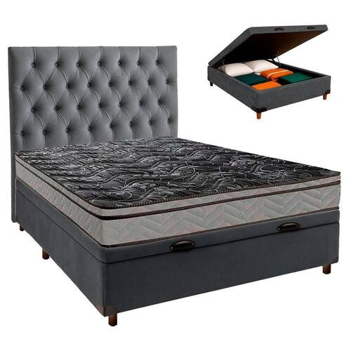 Conjunto Cama Box Bau Cinza Casal + Colchão D28 Conforto Paropas + Cabeceira Conjunto Casal Colchão Conforto + Cama Box Bau Colchão Casal com 17cm de altura, ideal para uso diário e confortável