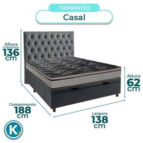 Suporte de até 80kg, indicado para crianças, adolescentes e adultos leves Base baú casal com 37cm de altura e amplo espaço interno para organização