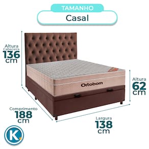 Conjunto Casal Colchão Airtech + Cama Box BauColchão Ortobom Casal com 25cm de altura, ideal para conforto no uso diárioTecido em poliéster que garante toque suave e boa ventilaçãoSuporte de até 120kg, ideal para diferentes biotipos com firmeza balanceadaBase baú casal com 37cm de altura e amplo espaço interno para organizaçãoRevestimento em Veludo , fácil de limpar e com visual modernoEstrutura reforçada com capacidade para até 150KgFicha Técnica Colchão:Modelo: AirtechMarca: OrtobomTamanho: CasalTecido: PoliésterLargura: 138cmComprimento: 188cmAltura: 25cmSuporte de Peso: 120KgGarantia: 3 MesesFicha Técnica Cama Box Bau:Modelo: PopMarca: NatureTamanho: CasalTecido: VeludoLargura: 138cmComprimento: 188cmAltura: 30cmAltura dos Pés: 7cmMaterial dos Pés: MadeiraSuporte de Peso: 150KgPeso: 35KgGarantia: 3 MesesAtenção:Antes da compra certifique-se de que o produto passa por elevadores, portas e corredores.As transportadoras não realizam entregas por escadas ou içamentos.Caso o item não caiba no elevador, a entrega será considerada concluída no térreo do prédio.A cor e tonalidade do produto pode variar de acordo com o dispositivo que o usuário está acessando.