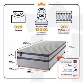 Garantia: 1 ano de garantia nas molas, 1 ano de garantia nas espumas e 3 meses no revestimento.