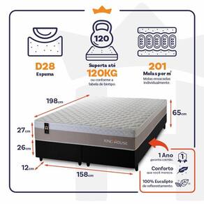 Feito com os mais nobres materiais em sua composição, ele conta com espuma D28 e molas ensacadas. Por ser mais macio, o colchão de molas ensacadas individualmente traz benefícios e ajuda no alinhamento da coluna. O colchão King House acomoda melhor o contorno do corpo, dispondo de forma correta quadris e ombros, expulsando as dores e problemas de coluna.