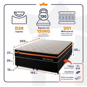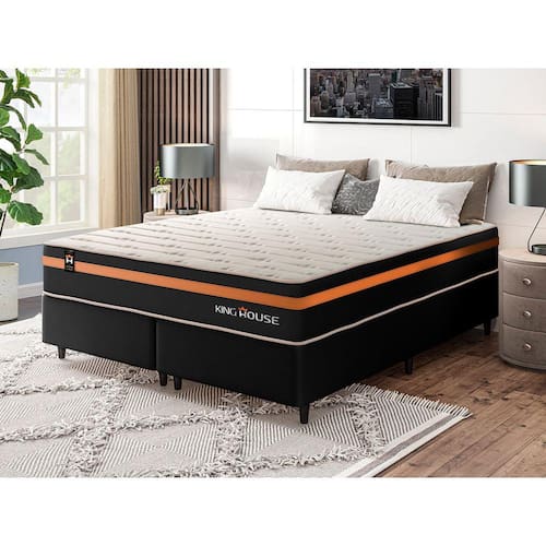 Feito com os mais nobres materiais em sua composição, ele conta com espuma D28 e molas ensacadas. Por ser mais macio, o colchão de molas ensacadas individualmente traz benefícios e ajuda no alinhamento da coluna. O colchão King House acomoda melhor o contorno do corpo, dispondo de forma correta quadris e ombros, expulsando as dores e problemas de coluna.