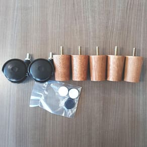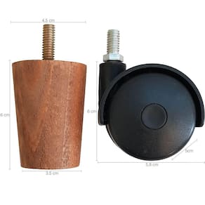 Garantia: 90 Dias / Peso: 550g / Cor: Marrom / Ref: 79DM03MELR55X2Dimensões do Rodízio: 5,8cm (C) x 5cm (L) x 6cm (A)Dimensões do Pé: 3,5cm (C) x 4,5cm (L) x 6cm (A)**Por serem fabricados com produto natural, madeira, a tonalidade dos pés podem variar.Cuidados: Não lavar com materiais abrasivos.Conteúdo: 5 pés fixos e 2 rodízios.Material:- Rodízio com Material de Polipropileno Injetado e Haste de Aço BTC Zincado Branco;- Madeira de Eucalipto com Umidade de 15% : Madeira 100% reflorestada;- Prisioneiro de aço zincado em amarelo trifásico;- Tinta PU a Base de Solventes;- Feltro Emborrachado.O conjunto trará praticidade e proporcionara um melhor design ao ambiente. Acompanhado de cinco pés e dois rodízios, permite o movimento da cama com maior facilidade, seja para facilitar na limpeza ou movimentar dentro do ambiente, além do feltro emborrachado, para ser fixados na parte inferior dos pés de madeira, evitando arranhaduras no chão. Com fácil instalação e de encaixe padrão com camas box e baú, será o acessório ideal para sua cama.