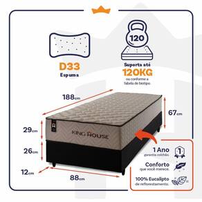 Feito com os mais nobres materiais em sua composição, ele conta com espuma D33 e molas ensacadas. O colchão King House acomoda melhor o contorno do corpo, dispondo de forma correta quadris e ombros, expulsando as dores e problemas de coluna.