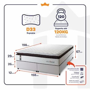 Feito com os mais nobres materiais em sua composição, ele conta com espuma D33 . O colchão King House acomoda melhor o contorno do corpo, dispondo de forma correta quadris e ombros, expulsando as dores e problemas de coluna.