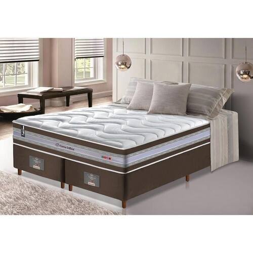 Conjunto Cama Box King De Molas Ensacadas D33 Cama Inbox Select Firme 193x203x71 Café