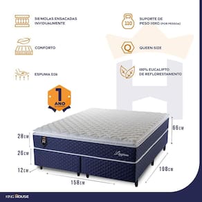 Feito com os mais nobres materiais em sua composição, ele conta com espuma D26 e molas ensacadas. Por ser mais macio, o colchão de molas ensacadas individualmente traz benefícios e ajuda no alinhamento da coluna. O colchão King House acomoda melhor o contorno do corpo, dispondo de forma correta quadris e ombros, expulsando as dores e problemas de coluna.
