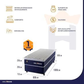 Feito com os mais nobres materiais em sua composição, ele conta com espuma D26 e molas ensacadas. Por ser mais macio, o colchão de molas ensacadas individualmente traz benefícios e ajuda no alinhamento da coluna. O colchão King House acomoda melhor o contorno do corpo, dispondo de forma correta quadris e ombros, expulsando as dores e problemas de coluna.