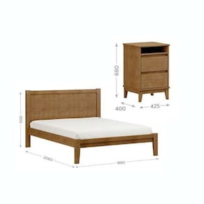 O conjunto da Linha Prata da Finestra reúne a Cama de Casal 1,60 m e duas Mesas de Cabeceira 2 Gavetas, trazendo conforto, organização e estilo para seu quarto. Produzidos em madeira maciça e MDF com acabamento em verniz PU/UV acetinado, garantem durabilidade e sofisticação. A cama oferece estrutura sólida e design moderno, enquanto as mesas de cabeceira proporcionam gavetas práticas para guardar itens essenciais, combinando funcionalidade e charme. Ideal para quem busca móveis elegantes, duráveis e com design contemporâneo, que valorizam a decoração e tornam o ambiente acolhedor e organizado. Possui Portas: Não Possui Rodízio: Não Acompanha Colchão: Não Altura do Conjunto: 110 cm Ambiente: null Ambiente Principal: Quarto Cor: Freijó Informação Complementar: 2x Mesa de Cabeceira 2 Gavetas 1 Nicho MDF e Madeira Maciça Linha Prata Freijó Largura: 42,5 cm Altura: 68,0 cm Peso: 16,2 kg Profundidade: 40,0 cm Necessita Montagem: Sim