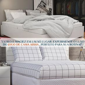 Transforme seu quarto em um verdadeiro santuário de conforto com o Jogo Cama Box King Size Aisha Com tecido 100% algodão e um toque extra macio, este conjunto é perfeito para quem busca uma experiência de sono indulgente e revigorante.