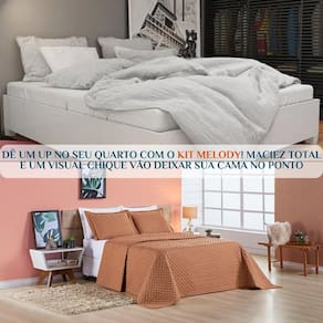 Imagine acordar todas as manhãs em um lugar que é puro conforto e estilo. Com o Conjunto Cama King Size Colcha Melody, isso é possível Não perca tempo, garanta já o seu e transforme sua cama em um verdadeiro paraíso