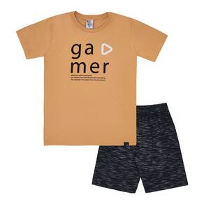 Seu pequeno pro player vai adorar a jogatina com os priminhos usando este conjunto que garante a vitória em todas as partidas! O conjunto possuí a camiseta confeccionada em tecido meia malha na cor camelo e a estampa em puff e escrita “gamer / quando você inicia um novo jogo, você sempre tem que estar preparado para tudo / isso diferencia os jogadores dos profissionais, jogador). O short que acompanha o conjunto é confeccionado em tecido moletom na cor preto, trazendo conforto para seu pequeno jogador! Bora uma partida?