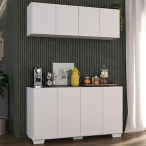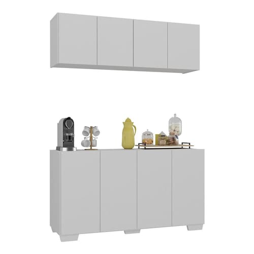 Conjunto Cantinho do Café Armário e Aparador 4 portas Multimóveis MP1085 - Branco