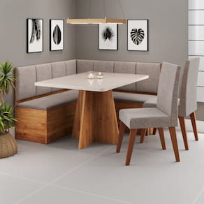 O Conjunto Canto Alemão com Baú é a escolha perfeita para quem busca praticidade sem abrir mão do estilo. A mesa conta com base em “X” produzida em MDP, oferecendo estabilidade e um design moderno. Seu tampo em MDF 1,8cm mede 120x80 cm, com cantos arredondados, e vidro de 0,4cm, unindo beleza e resistência. O banco possui baú embutido, ideal para armazenar itens com praticidade, aproveitando melhor o espaço. Acompanha 2 cadeiras modelo Milão, fabricadas em madeira, com espuma D26 que garante conforto em todas as refeições. O revestimento em tecido linho traz um toque de sofisticação e aconchego. É a combinação ideal para cozinhas ou salas de jantar compactas e charmosas.