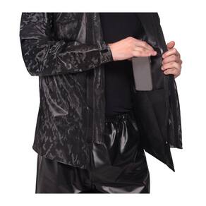 Ele conta ainda com refletivos no peito e nas costas, punho com fechamento em fecho de contato, bolso interno e a bainha com regulador em fecho de contato, protegendo totalmente o motociclista das adversidades do clima.