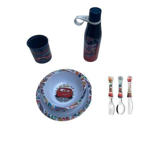 Conjunto Carros, pratos, caneca, Garrafa, talheres - NT Conjunto divertido carros composto de: