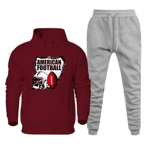 Conjunto Casaco de Frio Moletom Canguru e Calça Com Bolso Flanelada Estampa Futebol Americano Leve - Vinho - GG