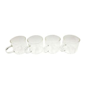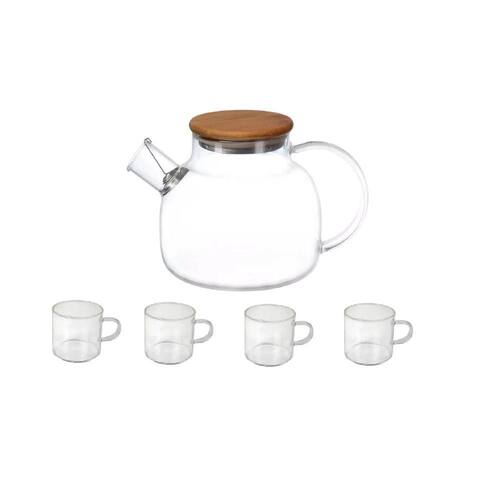 Kit com 1 chaleira e 4 xícaras de vidro.