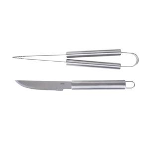 Os amantes de um bom churrasco podem contar com o auxílio do Conjunto Churrasco 2 Peças. Com design funcional, o kit composto por uma faca e um pegador proporciona praticidade e segurança no preparo de carnes e legumes. Ideal para festas em família, eventos e momentos de lazer, é a escolha perfeita para churrasqueiros exigentes.Utilize a faca para cortes precisos de carnes e legumes, garantindo um preparo impecável. O pegador, por sua vez, é ideal para virar os alimentos sobre a grelha com segurança, mantendo as mãos afastadas das chamas.Produzido em aço inoxidável, o conjunto é resistente à corrosão, garantindo durabilidade e qualidade. Além disso, é fácil de limpar e pode ser colocado na lava-louças, oferecendo mais praticidade no dia a dia. O design funcional dos cabos inclui aberturas que permitem pendurá-los, otimizando espaço na cozinha ou área de churrasco. Os cabos longos garantem maior distância das chamas, proporcionando mais segurança e conforto durante o uso.
