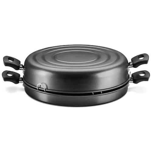 Churrasqueira Grill de fogão MTA Cristal com Revestimento Antiaderente - Grafite Bateu aquela vontade de fazer um churrasquinho, mas está com pouco tempo A Churrasqueira Cristal da MTA é a escolha certa para preparar petiscos de forma rápida. Fácil de usar, em média leva de 20 a 35 minutos para assar e pode ser levado em qualquer lugar. Ideal para preparo no fogão, tem uma grelha redonda que é ótima para grelhar e assar as mais variadas carnes, legumes e afins deixando o alimento bem dourado com menos gordura e suculentoo. Resistente, é feita de alumínio com 1,2 milímetros de espessura, revestimento com 5 camadas antiaderente de fácil limpeza, 4 alças de baquelite antitérmico resistentes ao calor. de refeições saborosas e saudáveis com os produtos da MTA Largura: 38cm Profundidade: 3 cm espaço para assar Altura: 10,4 incluindo o espaço para a tampa Peso: 0,970 Marca: Não Informado