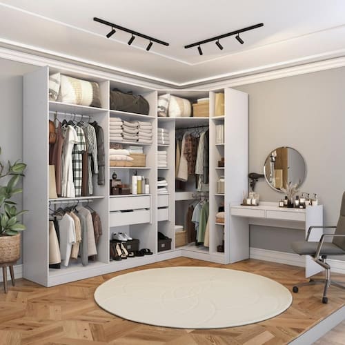 1x Guarda-Roupa de Canto Closet Sem Portas Kappesberg Adapt Branco 105cm;