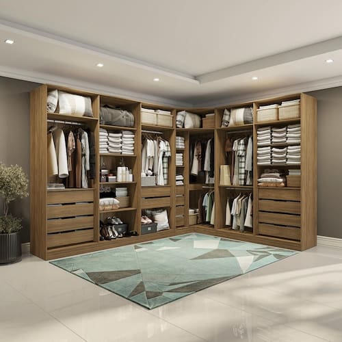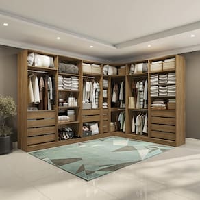 1x Guarda-Roupa de Canto Closet Sem Portas Kappesberg Adapt Nogueira 105cm;