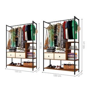 Com design industrial, cada closet possui 3 prateleiras e 2 gavetas, que ajudam a manter as roupas arrumadas.