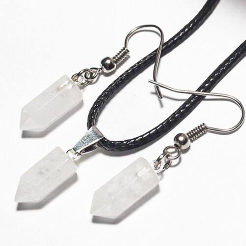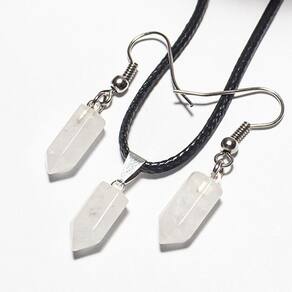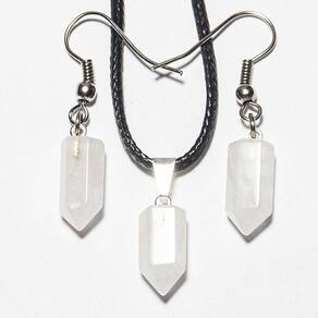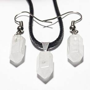 O Conjunto Colar e Brinco Pedra Quartzo Leitoso é a escolha certa para quem busca elegância e estilo. Adicione cor e brilho ao seu look.