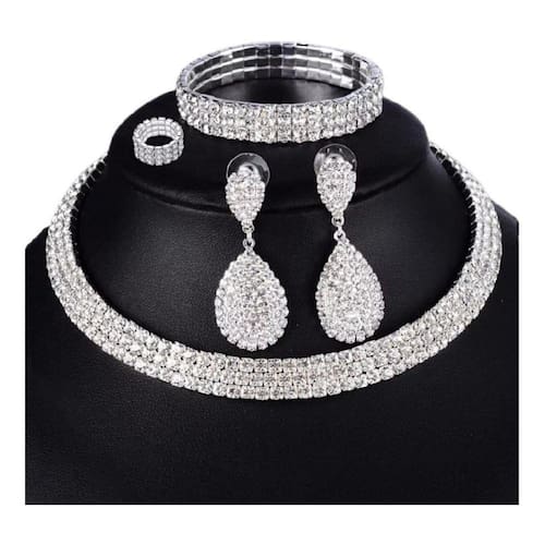 Conjunto colar, pulseira, anel e brinco de strass .Colar estilo Chocker com correntinha de regulagem de tamanho.Brinco com 5,2 cm de comprimento.Pulseira ajustável.Anel ajustável.Acompanha caixa de presente.--------------------- BIG BOOST ------------------------Conjunto Colar Chocker Pulseira Brinco Anel Noiva StrassConjunto colar, pulseira, anel e brinco de strass . Colar estilo Chocker com correntinha de regulagem de tamanho. Brinco com 5,2 cm de comprimento. Pulseira ajustável. Anel ajustável. Acompanha caixa de presente. Produto a pronta entrega.marca: Love Bijouxmodelo: prata com strassmaterial da cadeia: Strasscomprimento: 40 cmestilos: Chockerwith pendant: Nãomaterial do pingente: Strasscom pedras: Simtipos de pedras: Cristal Austríaco,strass,cristalgenero: Mulherunidades por embalagem: 1peso: 0 kgtipo de fecho: Lagosta