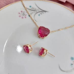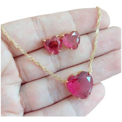 Adquira agora mesmo o Conjunto Colar e Brinco Coração Pedra Vermelho Marsala e desfrute da beleza e elegância desta joia única. Seja para uso próprio ou para presentear alguém especial, este conjunto certamente irá encantar