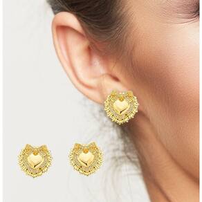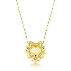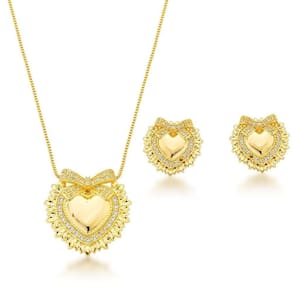Conjunto Colar e Brincos Coração com Laço Banhado a Ouro 18k 45cm -