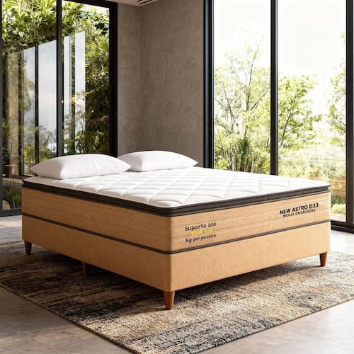 .Camada estrutural em EPS Produto Montado: Não Abertura para Ventilação: Não Acompanha Cama Auxiliar: Não Acompanha Colchão: Sim Altura da Base Box (Sem o Colchão): 42 cm Altura do Colchão (Sem a Base Box): 32 cm Altura Máxima dos Pés: 12.0000 Ambiente Principal: Quarto Antiácaro: Sim Antialérgico: Sim Antifungo: Sim Bicama: Não Cantoneiras: Sim Certificado: INMETRO codigo_ean: 7900288279057 Conjugado: Não Cor: Laranja / Branco Cor do Produto: Laranja / Branco Espessura da Mola: 2 mm Informações Complementares: Girar o produto a cada 30 dias Itens Inclusos: 1 Base Box e 1 Colchão Linha ou Coleção: Spring Luxo/New Astro Manual de Montagem e Instalação: https://product-hub-prd.madeiramadeira.com.br/773020047/documents/c5bffb78-7067-4ffa-80bf-b4f8008ced543306286667317619145516166.pdf Marca: Móveis Bom Pastor Material da Estrutura: Eucalipto Material dos Pés: Plástico Molas por m²: 174 Necessita Montagem: Não Nível de Conforto: Firme Origem do Produto: Nacional Peso: 35 kg Pillow: Pillow Top Possui Baú: Não Possui Pillow: Sim Precisa virar: Sim Recomendações de Uso, Manutenção e Limpeza: Não usar produto químico, limpar com apenas pano limpo úmido. Revestimento da Base Box: Veludo Tamanho: Casal Tamanho de Colchão: Casal Tipo de Cama Box: Base Box + Colchão Tipo do Colchão: Mola