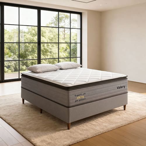 .Medidas: 188cm x 74cm Produto Montado: Não Abertura para Ventilação: Não Acompanha Cama Auxiliar: Não Acompanha Colchão: Sim Altura da Base Box (Sem o Colchão): 42 cm Altura do Colchão (Sem a Base Box): 32 cm Altura Máxima dos Pés: 12.0000 Ambiente Principal: Quarto Antiácaro: Sim Antialérgico: Sim Antifungo: Sim Bicama: Não Cantoneiras: Sim Certificado: INMETRO codigo_ean: 7900288278937 Conjugado: Não Cor: Cinza/Branco Cor do Produto: Cinza/Branco Espessura da Mola: 2 mm Informações Complementares: Girar o produto a cada 30 dias Itens Inclusos: 1 Cama Box Linha ou Coleção: Valery Luxo Manual de Montagem e Instalação: https://product-hub-prd.madeiramadeira.com.br/488722278/documents/aded0271-b347-4258-839a-1847034c942f3306277667317619143524923.pdf Marca: Móveis Bom Pastor Material da Estrutura: Eucalipto Material dos Pés: Plástico Molas por m²: 176 Necessita Montagem: Não Nível de Conforto: Firme Origem do Produto: Nacional Peso: 72 kg Pillow: Pillow Top Possui Baú: Não Possui Pillow: Sim Precisa virar: Sim Recomendações de Uso, Manutenção e Limpeza: Não usar produto químico, limpar com apenas pano limpo úmido. Revestimento da Base Box: Veludo Tamanho: Casal Tamanho de Colchão: Casal Tipo de Cama Box: Base Box Tipo do Colchão: Mola