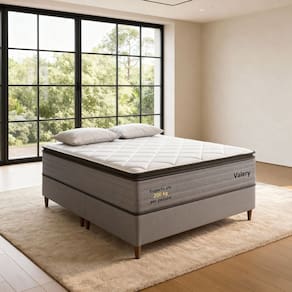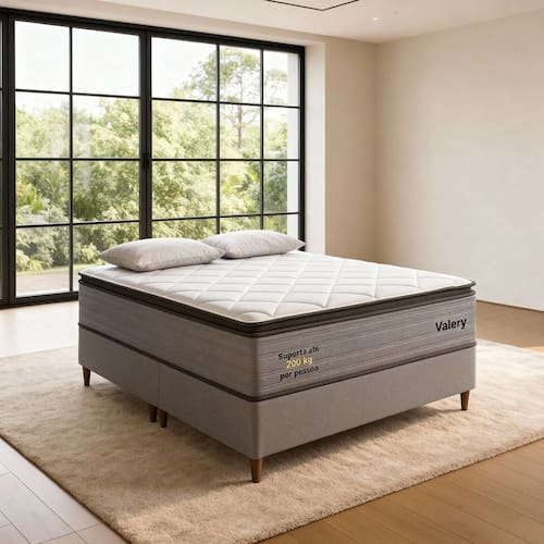 .Medidas: 88cm x 32cm Produto Montado: Não Abertura para Ventilação: Não Acompanha Cama Auxiliar: Não Acompanha Colchão: Sim Altura da Base Box (Sem o Colchão): 42 cm Altura do Colchão (Sem a Base Box): 32 cm Altura Máxima dos Pés: 12.0000 Ambiente Principal: Quarto Antiácaro: Sim Antialérgico: Sim Antifungo: Sim Bicama: Não Cantoneiras: Sim codigo_ean: 7900288278852 Conjugado: Não Cor: Cinza/Branco Cor do Produto: Cinza/Branco Espessura da Mola: 2,2 mm Informações Complementares: Girar o produto a cada 30 dias Itens Inclusos: 1 Base Box e 1 Colchão Linha ou Coleção: Valery / Luxo Manual de Montagem e Instalação: https://product-hub-prd.madeiramadeira.com.br/233923138/documents/602ef073-8996-42af-9c25-688b51d3b9923306319667317619149169214.pdf Marca: Móveis Bom Pastor Material da Estrutura: Eucalipto Material dos Pés: Plástico Molas por m²: 176 Necessita Montagem: Não Nível de Conforto: Firme Origem do Produto: Nacional Permite a Utilização de Cama Auxiliar: Não Peso: 98,1 kg Pillow: Pillow Top Possui Baú: Não Possui Pillow: Sim Precisa virar: Sim Recomendações de Uso, Manutenção e Limpeza: Não usar produto químico, limpar com apenas pano limpo úmido. Revestimento da Base Box: Veludo Tamanho: King Tamanho de Colchão: King Tipo de Cama Box: Base Box Tipo do Colchão: Mola