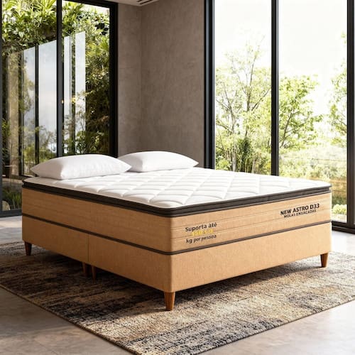 .Camada estrutural em EPS Produto Montado: Não Abertura para Ventilação: Não Acompanha Cama Auxiliar: Não Acompanha Colchão: Sim Altura da Base Box (Sem o Colchão): 42 cm Altura do Colchão (Sem a Base Box): 32 cm Altura Máxima dos Pés: 12.0000 Ambiente Principal: Quarto Antiácaro: Sim Antialérgico: Sim Antifungo: Sim Bicama: Não Cantoneiras: Sim codigo_ean: 7900288280114 Conjugado: Não Cor: Laranja/Branco Cor do Produto: Laranja/Branco Espessura da Mola: 2 mm Informações Complementares: Girar o produto a cada 30 dias Itens Inclusos: 2 Bases Box e 1 Colchão Linha ou Coleção: New Astro/Luxo Manual de Montagem e Instalação: https://product-hub-prd.madeiramadeira.com.br/805215680/documents/cc204393-7ad1-4b22-897f-41d70b680bb03306538667317619159122318.pdf Marca: Móveis Bom Pastor Material da Estrutura: Eucalipto Material dos Pés: Plástico Molas por m²: 174 Necessita Montagem: Não Nível de Conforto: Firme Origem do Produto: Nacional Peso: 74 kg Pillow: Pillow Top Possui Baú: Não Possui Pillow: Sim Precisa virar: Sim Recomendações de Uso, Manutenção e Limpeza: Não usar produto químico, limpar com apenas pano limpo úmido. Revestimento da Base Box: Veludo Tamanho: Queen Tamanho de Colchão: Queen Tipo de Cama Box: Base Box Tipo do Colchão: Mola